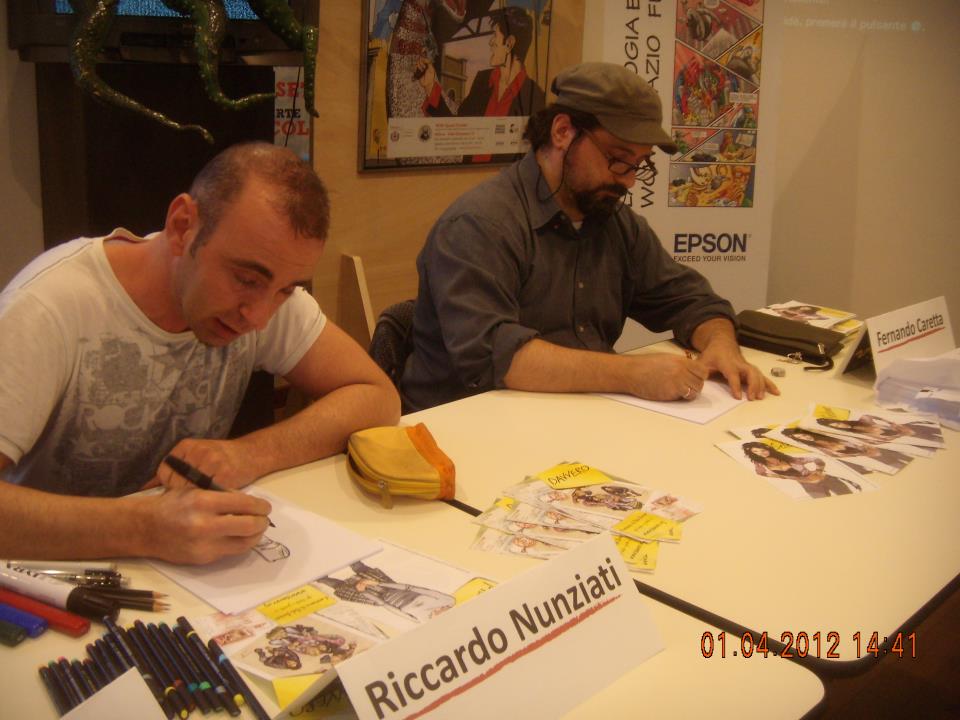 Dopo aver salutato Dotti mi dirigo nel negozio dove è ospitata Alessia Martusciello, disegnatice della Disney e della Bonelli, dove incontro gli amici Luca, Cristiano, Lorenzo "acquadifuoco" e l'immarcescibile Alberto "zgr"